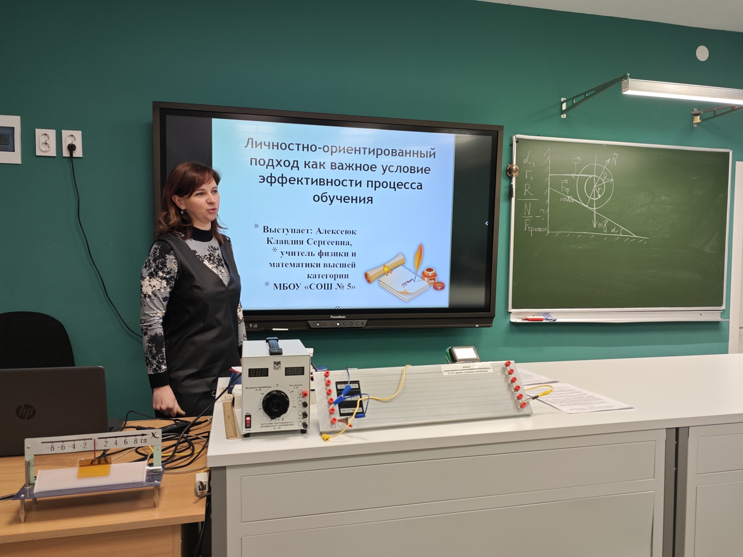 О личностно-ориентированном подходе как важном условии эффективности процесса обучения рассказала учитель физики МБОУ СОШ № 5 Алексеюк Клавдия Сергеевна.
